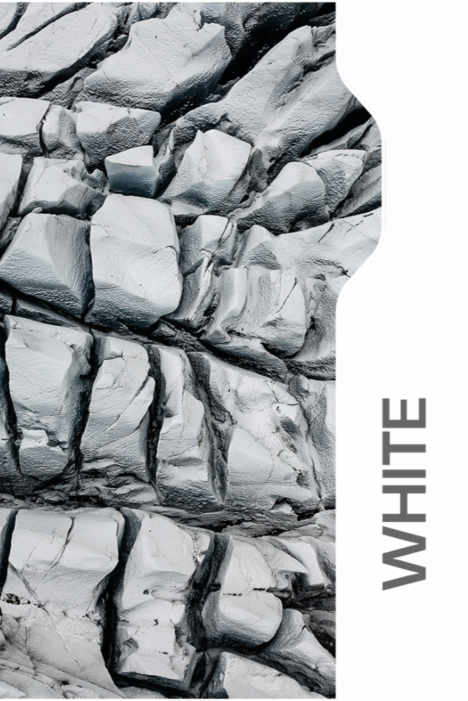 Weiß ist frisch, klar und repräsentativ, mit Einflüssen der ikonischen weißen Kreidefelsen. Es strahlt Handwerkskunst und Selbstvertrauen aus und ist die ideale Wahl für den Profi, der in Weiß arbeitet